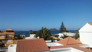 BELLAVISTA – Two bedroom sea-side duplex apartment for rent in Corralejo town centre with free WiFi Internet access and air conditioned. All amenities are within easy reach of this apartment. It’s the perfect base for exploring the island or simply relaxing by the beach, which is only 50 meters from the apartment.This duplex apartment comprises of a semi-independent kitchen, lounge and terrace on the first floor. The lounge has a double sofa bed, television with satellite international chanels. The kitchen has a fridge/freezer, microwave oven and is fully equipped with everything needed for the self-catering holidaymaker. From the terrace you can enjoy fantastic panoramic sea views to the beautiful island of Lobos.Downstairs the ground floor comprises of a master bedroom with  bathroom and another adjacent  sleeping area with a single sofa bed. The master bedroom includes double bed, fitted wardrobe . The bathroom is fully equipped with  shower, mirror, toilet, bidet, wash basin and is fully tiled.