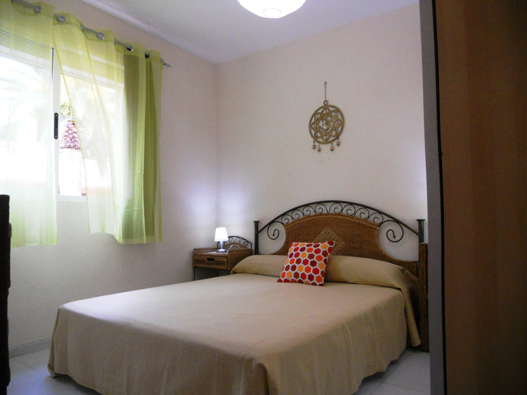SIESTA– Cosy apartment located in the most quiet of Resid. Las Dunas, «the Palm Garden», on the 1st floor, with a large balcony-terrace. Decorated in a simple canary-style , but well prepared to accommodate up to 4 people, consists of equipped kitchen: microwave, electric stove, dishes, coffee maker, washing machine. Luminous living room with  double sofa bed,  Wifi and  SmartTV-SAT with europe channel, large window view the garden. Large double bedroom with wardrobe, large window. Bathroom with shower, window, hair dryer, iron and ironing board. Terrace with table and 4 chairs. All windows have mosquito nets. At 250 mt from the Great Beach of sands,  Las Dunas and the see.A 150 m from the shopping center “El Campanario” with supermarket, bar-restaurants, shops, taxi stand.A 10 minute walk, you reach the main street of Corralejo.All outdoor activities. Water sports: windsurfing, surfing, kitesurfing, paddlesurf also optionally choose specific courses per week. Sea excursions by catamaran, sailing, diving. Excursions by bike, quad, karting, jeep safari. Beaches for lovers of sun, clear sea and white sandy. The Residencial Las Dunas is a magnificent complex in Corralejo , a 10,000 m2 within in a sub- tropical garden: palms, bougainvillea , hibiscus, aloe , ficus .. , an oasis of tranquility and relaxation at easy reach of Dune – Great Beaches and the sea .The center of the Las Dunas, the beautiful salt water pool, gym, and  patio wi-fi zone are free of charge to our guests. For those who love shopping, exceptional purchases in duty-free .At 300 meters from the Residencial Las Dunas, the beach «Coco Beach» Hotel Bahia Real Grand Luxe & Spa, for your unforgettable special occasion to celebrate.